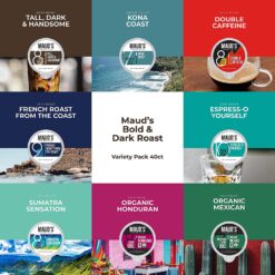 - Bold and Dark Roast Variety Pack Profile – Take a trip to the dark side with an assortment of 8 different gourmet dark roast blends with our Maud’s Bold & Dark Roast Variety Pack and uncover your favorites now! This mix of premium dark roasts includes Tall Dark & Handsome, Double Caff, Espresso, Kona, Sumatra, French Roast, Organic Honduran, and Organic Mexican to round out our exclusive dark roast variety pack!