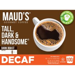 Maud’s Decaf Dark Roast Coffee Pods, 100 ct | Decaffeinated Tall, Dark & Handsome Blend | 100% Arabica Dark Roast Coffee | Solar Energy Produced Recyclable Pods Compatible with Keurig K Cups Maker