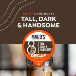 - [Flavorful Decaf Dark Roast Coffee]: Maud’s “Tall Dark & Handsome” Decaffeinated Dark Roast Coffee presents a full-bodied cup with a silky texture, boasting a sweet aroma and delightful notes of toasted nuts. This dark roast stands as our most popular blend, offering a rich and satisfying experience.