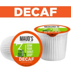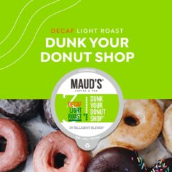 - [Flavorful Decaf Donut Shop Blend]: Maud’s “Dunk Your Donut Shop” Decaffeinated Coffee is a lightly roasted blend with the perfect mellow donut shop flavor and a crisp, clean aftertaste that pairs perfectly with any breakfast.
