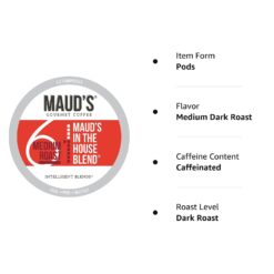 - [Flavorful House Blend]: Maud’s ‘In The House Blend’ Medium Dark Roast Coffee is an American classic. It’s a well-balanced, medium-bodied coffee with South American richness—bright enough for breakfast and rich enough for dinner.