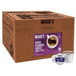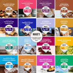 - Pack Profile – Spring into Maud’s Super Flavored Coffee Variety Pack Jam-Packed with 16 total flavors! Medium roast flavored coffee deliciously blended to perfection to match their names. Includes: Caramel Macchiato, Coconut Cream Chocolate, Salted Caramel, Peanut Butter Chocolate, Cinnamon Churro, Irish Cream Cheesecake, Oatmeal Cookie, Cinnamon Roll, Sweet Hazelnut, Raspberry Chocolate, Banana Foster, Vanilla Almond Biscotti, French Toast, Jamaican Rum, French Vanilla, & Blueberry.