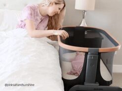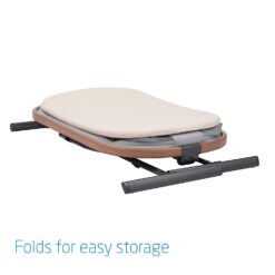 The Iora features a modern design and versatility, at home or on the go. Iora’s four height positions give you a customized fit, not only adjusting up and down, but also side to side. The extra-large storage basket stores baby’s essentials, and the bassinet folds up and stores in its own travel bag.