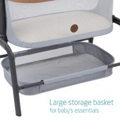 The extra-large storage basket is easy to access and holds all of baby’s essentials making sure all is within arms-reach.