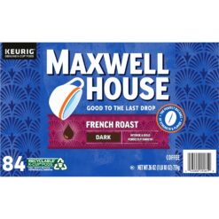 - MAXWELL HOUSE COFFEE PODS: One 84 ct box of Maxwell House Dark French Roast Coffee K-Cup Pods