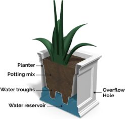 - Integrated water reservoir reduces the need for frequent watering and promotes healthy plant growth