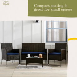 Mayview 4-Piece Rattan Outdoor Patio Conversation Set, Navy & Gray
