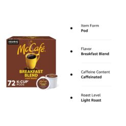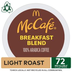 McCafe Breakfast Blend, Single Serve Coffee Keurig K-Cup Pods, Light Roast, 72 Count (6 Packs of 12)
