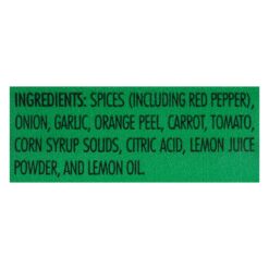 SPICES (INCLUDING RED PEPPER), ONION, GARLIC, ORANGE PEEL, CARROT, TOMATO, CORN SYRUP SOLIDS, CITRIC ACID, LEMON JUICE POWDER, AND LEMON OIL