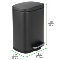 This Rectangular Step Trash Can Wastebasket by mDesign is perfectly sized for large or small spaces. This compact, stylish can has plenty of room for your recyclables and garbage. Made of high-quality durable steel metal, this can withstands everyday use. It can be used for trash, recycling or storing small household items. This 1.3 Gallon/5 Liter step can features hands-free opening and closing. The removable liner bucket has a metal handle which makes emptying waste effortless and hassle-free. Modern living by design.