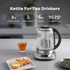 - Brewing Easily or Professionally – 9 preset brewing programs for you to reach the ideal temperature for most hot beverages, and the to 1 degree temperature control function (100-212℉) for professional tea brewing and taste exploring. You can always get fun in brewing with this electric kettle.