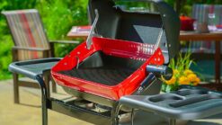 - converting to a fully vertical position for rotisserie grilling (rotisserie sold separately)