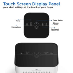 - Easy To Use Features: Includes a sleek touch screen operation panel with 0-8 hour timer, fan speed, sleep mode, filter replacement indicator, and child lock, great for both kids and pets