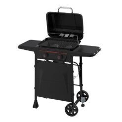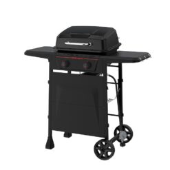 Meet the Megamaster 2 Burner Propane Gas Grill in Black. The perfect grill for apartment living or wherever outdoor room is in short supply. with over 376 sq. in. of cooking space, this BBQ holds its own. The 2 independent stainless steel main burners can be regulated with a simple push-and-turn ignition knob and supply 18,000 BTU’s of total flame roasting power. When you’re done grilling, 2 heavy-duty wheels allow you to free up patio space. Turn even the smallest outdoor area into your favorite BBQ spot, with the Megamaster 2 Burner Propane Gas Grill in Black.