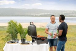 Bring the barbecue anywhere you go with this portable tabletop propane grill that’s perfect for on-the-go cooking at picnics, tailgates, camp-outs, and more; Smooth surfaces for easy cleaning