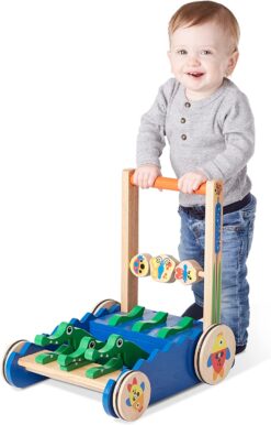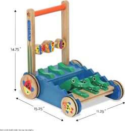 - WOODEN WALKER WITH ENGAGING ACTIVITIES: The Melissa & Doug Chomp & Clack Alligator Push Toy is a wooden activity walker for babies on the move. It features three chomping alligators, fish on the wheels, and spinning butterfly and ladybug beads.