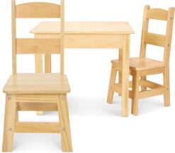 Melissa & Doug Solid Wood Table and 2 Chairs Set – Light Finish Furniture for Playroom