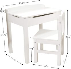 - SOLID WOODEN CHAIR & DESK SET: The Melissa & Doug Child’s Lift-Top Desk and Chair is made from high-quality wood. It comes in a white finish and wipes clean to keep it looking fresh and new.
