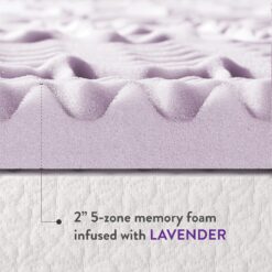 Mellow 2 Inch 5-Zone Memory Foam, Soothing Lavender Infusion, King Mattress Topper