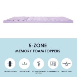 Mellow’s 5-zone toppers are designed with five different zones to bring you targeted support so that every area of your body is properly cradled, with pressure points alleviated and comfort optimized at every inch. On top of that, enjoy the soothing benefits of lavender infused into the memory foam.