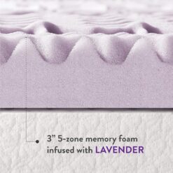Mellow 3 Inch 5-Zone Memory Foam Mattress Topper, Soothing Lavender Infusion, King