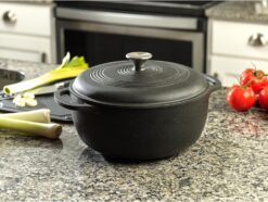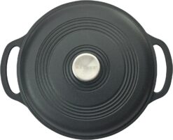 Discover the perfect blend of form and function with this 6qt Enamel Coated Dutch Oven. Expertly crafted from heavy-duty cast iron, this Dutch oven ensures uniform heating and superb heat retention, making it ideal for slow cooking, braising, roasting, and more. Its vibrant enamel coating not only offers a durable, non-reactive interior but also matte black or in or out of your kitchen. With a snug-fitting lid that locks in moisture and flavors, your dishes will come out tender and flavorful every time. Additionally, the large 6-quart capacity provides ample space for family-sized meals or entertaining guests. Easy to clean and resistant to chipping or staining, this Dutch oven is as practical as it is attractive. Whether you’re a seasoned chef or a home cook, this enamel-coated Dutch oven will become a cherished staple in your culinary arsenal.