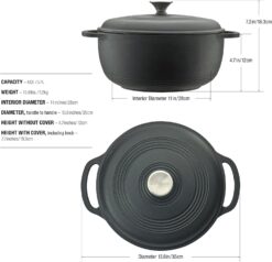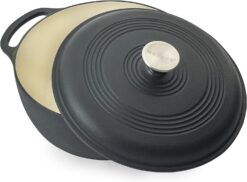 - QUALITY CONSTRUCTION: Our Cast Iron Dutch Oven, covered with chip-resistant porcelain-enamel, delivers superior heat distribution and retention. Ideal for slow cooking, braising, roasting, and more
