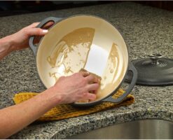 - EASY TO CLEAN: The enamel interior minimizes sticking and is resistant to chipping and staining. In order to keep your Dutch Oven in good condition wash by hand only with a soft sponge and mild soap, do not immerse in water for long periods of time
