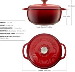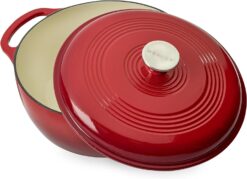 - QUALITY CONSTRUCTION: Our Cast Iron Dutch Oven, covered with chip-resistant porcelain-enamel, delivers superior heat distribution and retention. Ideal for slow cooking, braising, roasting, and more