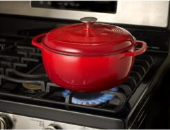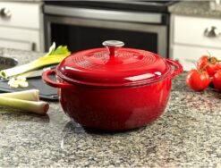 Discover the perfect blend of form and function with this 6qt Enamel Coated Dutch Oven. Expertly crafted from heavy-duty cast iron, this Dutch oven ensures uniform heating and superb heat retention, making it ideal for slow cooking, braising, roasting, and more. Its vibrant enamel coating not only offers a durable, non-reactive interior but also brings a splash of color to your kitchen, ensuring it stands out on any stovetop or dining table. With a snug-fitting lid that locks in moisture and flavors, your dishes will come out tender and flavorful every time. Additionally, the large 6-quart capacity provides ample space for family-sized meals or entertaining guests. Easy to clean and resistant to chipping or staining, this Dutch oven is as practical as it is attractive. Whether you’re a seasoned chef or a home cook, this enamel-coated Dutch oven will become a cherished staple in your culinary arsenal.
