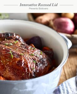 - Recessed lid is shaped to prevent boil overs and provide extra room