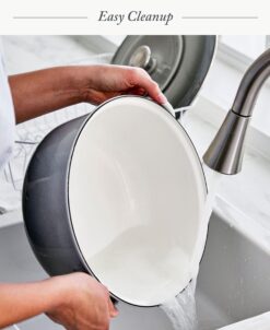 - Crafted from enameled iron—a thinner, tougher material than cast iron that heats fast and evenly