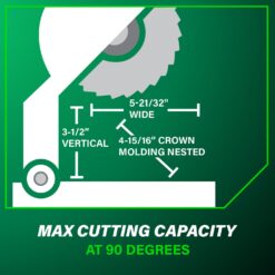 - VERSATILE CUTTING CAPABILITIES: With a 0-52° miter angle range left and right and a bevel range of 0-45° left, this compound miter saw offers flexibility. Adjustable bevel stops ensure precision cuts for various woodworking applications.