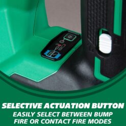 - USER-FRIENDLY DESIGN: Featuring a tool-less depth adjustment for precision nailing and a selective actuation switch for quick changes from sequential to bump fire mode. This cordless nailer uses compressed air for performance similar to a pneumatic tool.