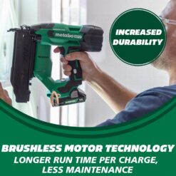 - POWERFUL AND EFFICIENT: This 18V cordless brad nailer delivers up to 2 nails per second with no ramp-up time, driving 5/8″ to 2″ 18 gauge brad nails. The brushless motor technology provides longer run time, less maintenance, and increased durability.