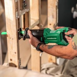 The brand that pioneered innovative technology in woodworking tools introduces the next great reciprocating saw to the Metabo HPT platform of cordless tools. The 18V MultiVolt Cordless Reciprocating Saw is the next generation of dynamic cutting speed and durability. Use the CR18DBQ4M for all your demolition and rough cutting needs on the job or at home. Besides pro level cutting performance, this lightweight reciprocating saw has all the right features. Quick tool-less blade change system, a variable speed trigger, orbital cutting mode, a LED light, and a counter balance gear housing to minimize vibration levels are all standard on this exciting new Metabo HPT tool. The CR18DBQ4M 18V Cordless reciprocating saw is part of the expanding MultiVolt System of 18-Volt and 36-Volt power tools from Metabo HPT. GO lighter with 18V batteries or GO longer with the unique MultiVolt battery that works on both 18V and 36V tools to double your runtime for up to 8.0Ah* of runtime per charge for more power on the GO.