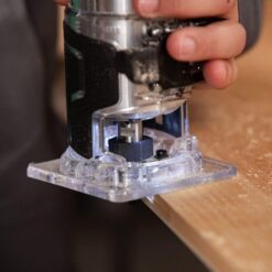 This brushless cordless trim router has all the power you need with a compact profile and a 26% lighter tool body. The ergonomically designed variable speed dial and 2-stage power system are both located on the tool body for easy and safe one-handed operation. With a bright LED to illuminate the work space and convenient lock-on button to reduce hand fatigue, you can get more done in less time. Additional features, including a quick-braking system, soft start, a removable dust collection port, and three cutting guides, ensure the highest quality trim routing experience possible. The M1808DAQ4 Cordless Trim Router is part of the expanding MultiVolt system of power tools from Metabo HPT. It accepts any MultiVolt battery for extreme power, and up to 8.0Ah of runtime! It is also backed by the Metabo HPT Lifetime Lithium Ion tool body warranty, making it a safe bet for the long haul!