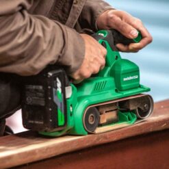 Metabo HPT’s 36V MultiVolt Cordless Brushless 3″ x 21″ Belt Sander (model SB3608DAQ4) is truly revolutionary when it comes to cordless sanding performance. Remodelers, flooring installers, carpenters, deck builders, and DIYers alike, finally have a cordless belt sander solution that does not disappoint. Cutting the cord and having all the freedom of movement of a cordless belt sander now comes with the power, features, and dust collection that demanding users expect. This cordless belt sander is an everyday pro-level woodworking tool for quick touch ups or large scale hardwood projects and everything in between. The SB3608DAQ4 36V Cordless 3″ x 21″ Belt Sander is part of the expanding MultiVolt system of power tools from Metabo HPT. It accepts any MultiVolt battery for extreme power and runtime and can also accept the unique AC Adaptor (ET36A) to plug in for all day runtime, offering ultimate versatility and power on the GO.