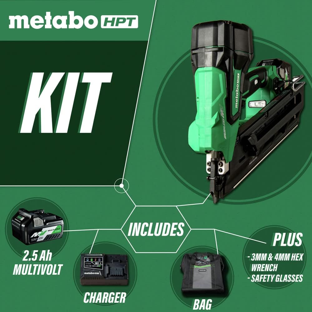 Metabo HPT 36V MultiVolt Cordless Paper Strip Framing Nailer | Includes Battery and Charger | NR3690DC