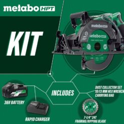 Metabo HPT 36V MultiVolt™ Cordless Rear Handle Circular Saw Kit | Optional AC Adapter | 7-1/4-Inch Blade | 500 Cross Cuts Per Charge | Lightweight – 8.2 Lbs. | Green | C3607DWA