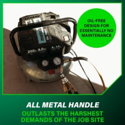 This portable pancake air compressor is ideal for heavy-duty tasks across various applications. Whether you’re framing, siding, finishing, brad nailing, or roofing, THE TANK™ provides reliable performance on the job site. Designed with efficiency in mind, it ensures you can tackle demanding projects with confidence and consistency.