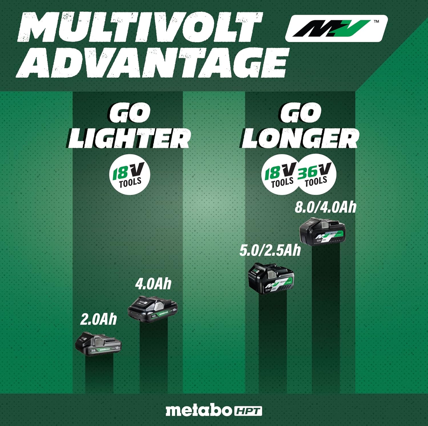 The 18V MultiVolt Cordless Drywall Screw Gun model – W18DAQ4 has 5,000 RPMs for the power to make quick work of any drywall job. This screw gun also has three operation modes: manual, automatic, and impulse allowing the user maximum flexibility. It is equipped with 2 LED lights for illuminating dark work environments. The compact ergonomic design gives the user a lightweight and balanced tool, and the brushless motor improves efficiency and reduces maintenance. The W18DAQ4 18V Drywall Screw Gun is a part of the ever expanding MultiVolt System of 18-Volt and 36-Volt power tools from Metabo HPT. GO lighter with 18V batteries or GO longer with the unique MultiVolt battery that works on both 18V and 36V tools to double your runtime for up to 8.0Ah of runtime per charge for more power on the GO.