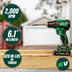 The 18V MultiVolt Cordless Brushless Driver Drill Kit (model – DS18DEX) provides an innovative solution to make any job even more productive. This updated model is more compact (shorter in overall length), making it ideal to maneuver in tight, narrow, or awkward spaces. Additionally , it’s 10% faster than its predecessor and delivers the highest max torque in its class at 620 in-lbs, with an impressive driving speed of 2,000 RPM. Reactive Force Control (RFC) is added to provide anti kick-back for safety and complete control during operation. Included in this kit are (2) 18V 2.0Ah batteries with fuel gauge indicators, charger, #2 Phillips bit and carrying bag. This drill is great for driving or removing machine screws, wood screws, tapping screws, etc., and drilling into various metals and woods. Its backed by Metabo HPT’s Lifetime Lithium Ion tool warranty, making it a safe bet for the long haul. The 18V MultiVolt Cordless Brushless Driver Drill (model – DS18DEX) is a part of the expanding MultiVolt System of 18-Volt and 36-Volt power tools from Metabo HPT. GO lighter with 18V batteries or GO longer with the unique MultiVolt battery that works on both 18V and 36V tools to double your runtime for up to 8.0Ah of runtime per charge for more power on the GO.
