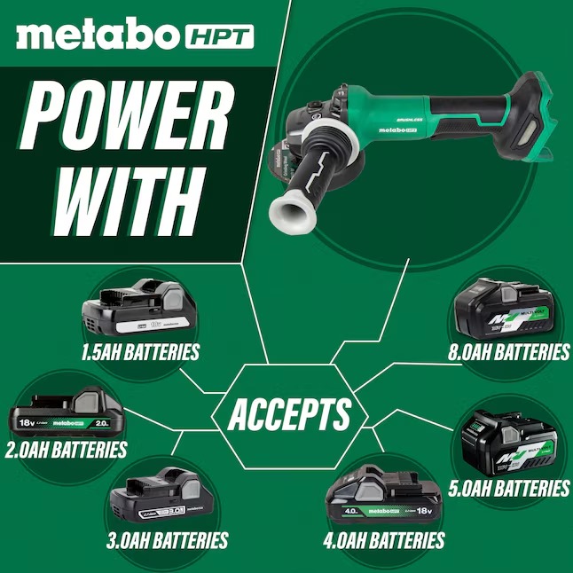Metabo HPT G1812DFQ4M MultiVolt 4.5-in 18-volt Paddle Switch Brushless Cordless Angle Grinder (Battery and Charger Not Included)