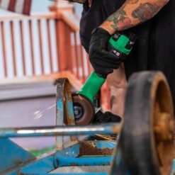 The 18V MultiVolt 4-1/2″ Paddle Switch Angle Grinder (G1812DFQ4) offers exceptional performance and safety. It delivers corded power with the flexibility of a cordless tool. The robust brushless motor delivers a no load speed of 8,000 RPM, which allows you to take on a wide variety of tasks. The brushless motor is ultra efficient, extending product life and eliminating maintenance of armatures or carbon brushes. Auto-mode option automatically adjusts the RPM down when the tool is not under load, resulting in a decrease in noise and vibration, while also sparing the life of the battery for optimum performance. Provided safety features are a no-lock paddle switch, quick braking feature, kickback protection, zero voltage restart and soft start. A tool less wheel guard and 3 position anti-vibration side handle provide the user increased operational efficiency. A removable dust filter offers additional protection for the motor against dust and debris and ensuring that the tool is operating effectively. The G1812DFQ4 18V Cordless 4-1/2″ Paddle Switch Angle Grinder is a part of the expanding MultiVolt System of 18-Volt and 36-Volt power tools from Metabo HPT. GO lighter with the 18V batteries or GO longer with the unique MultiVolt battery that works on both 18V and 36V tools to double your runtime for up to 8.0Ah of runtime per charge for more power on the GO.