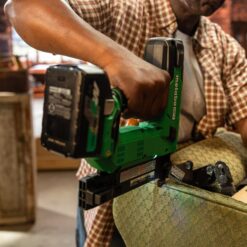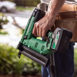 The Pro preferred Brand of Pneumatic Nailers introduces an 18V MultiVolt 18-Ga 1-1/2″ Cordless Narrow Crown Stapler (model – N1804DB) that will meet the expectations of both the DIYer and the Pro. This cordless narrow crown stapler allows you to work wherever you want without the need for a loud compressor or hose. It features the power to drive up to 700 narrow crown staples per charge. It features Metabo HPT’s unique low maintenance Mechanical Spring Drive System. With this type of power and run time, you can complete your job on time without needing to stop for battery changes. The 18V Cordless 18-Ga Narrow Crown Stapler is part of the expanding MultiVolt System 18-Volt and 36-Volt power tools from Metabo HPT. GO lighter with 18V batteries of GO longer with the unique MultiVolt battery that works on both 18V and 36V tools to double your runtime for up to 8.0Ah of runtime per charge for more power on the GO.