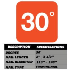 - FASTENERS: Accepts 2-in up to 3-1/2-in paper collated framing nails