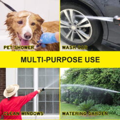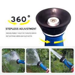 - COMFORTABLE HANDLE HOSE NOZZLE – Made of High density Rubber and High Grade rustproof metal, the hose nozzle come with High-pressure and powerful jet, large area irrigation. The water outlet mode and size can be adjusted to easily regulate various situations. The ergonomically-designed handles are softly cushioned, anti-slip and comfortable. The flexible garden hose nozzle is very durable and easy to use.