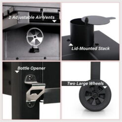 • Features: Adjustable Air Vents, Adjustable Charcoal Tray, Portable, Removable Ash Catcher, Rust Resistant, Warming Rack