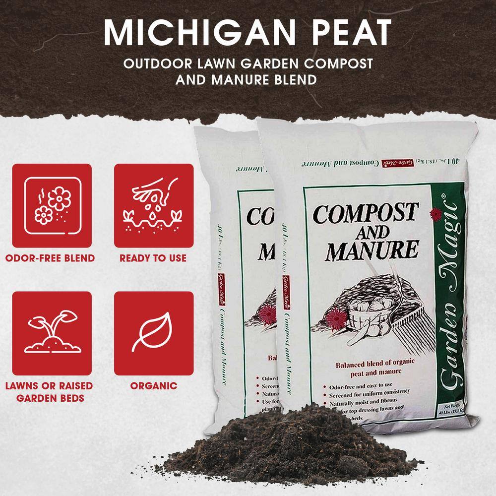 Michigan Peat Lawn Garden Compost and Manure Blend, 40 Pound Bag (2-Pack)